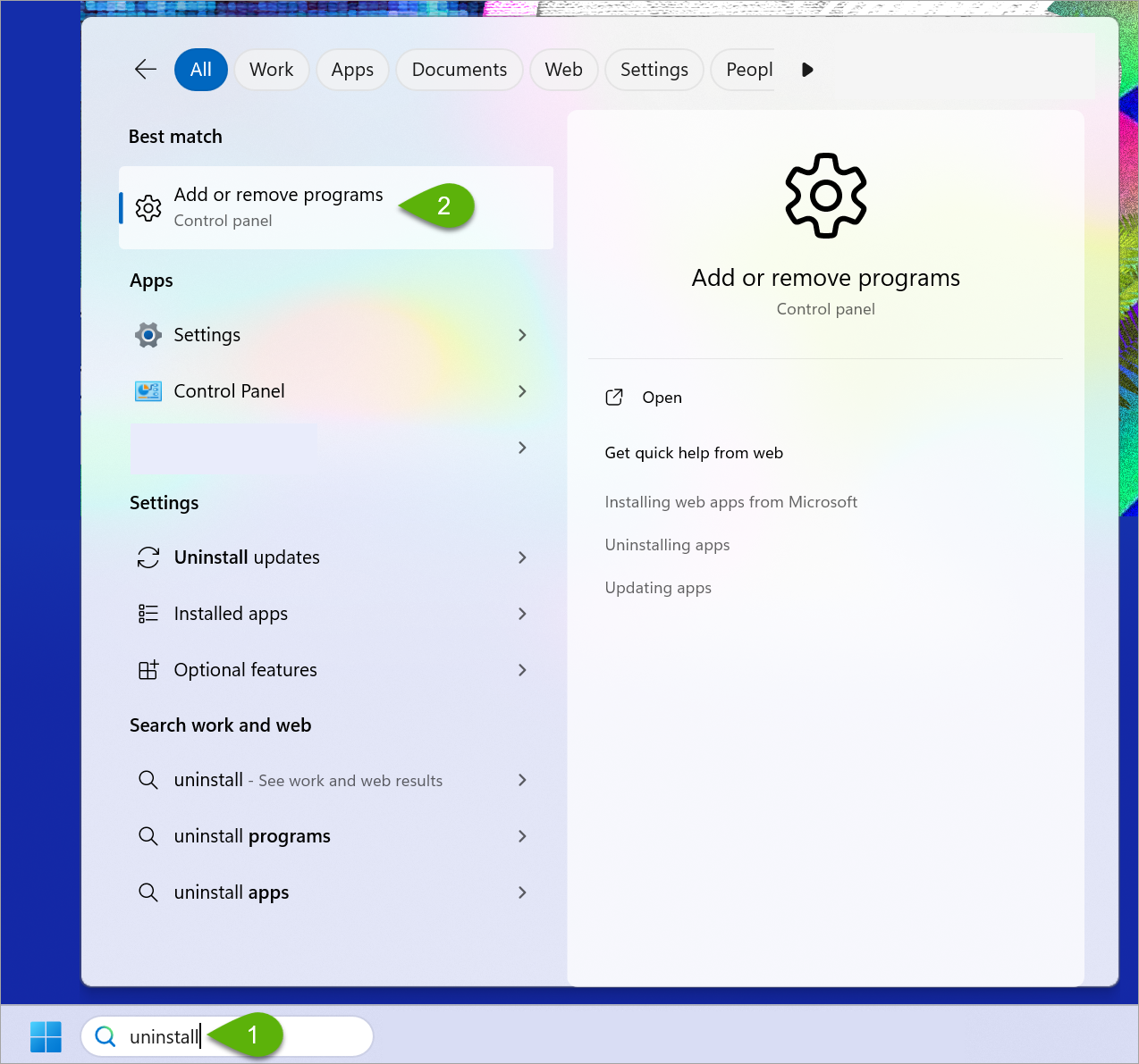 - Geben Sie Deinstallieren in die Suchleiste neben dem Windows-Menü ein.