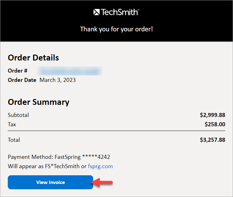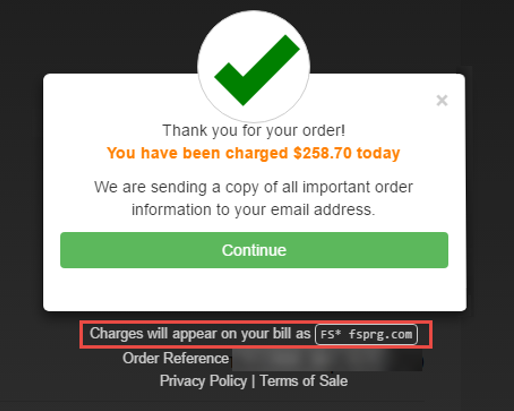 When you purchase a product in our online store, the charge for your order will appear on your credit card as FS* fsprg.com, FS*TechSmith, fsprg.com, or Bright Mark LLC dba FastSpring.