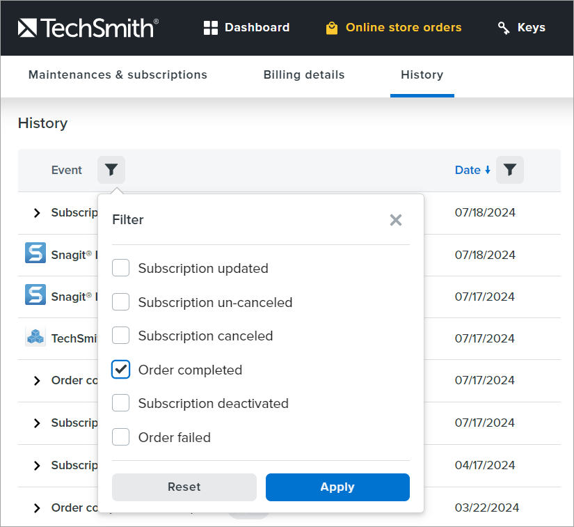 | TechSmith Assets | A subscription will only be refunded if the request is received within 14 days of the purchase date, provided you have not downloaded more than 5 Assets. |