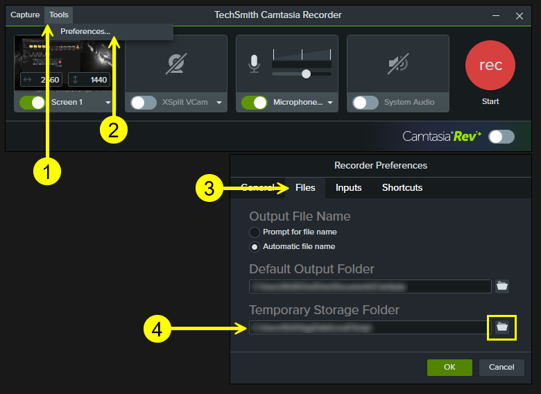 This error occurs if the temporary folder in Camtasia Recorder does not exist or if your account does not have proper read/write access to the folder.