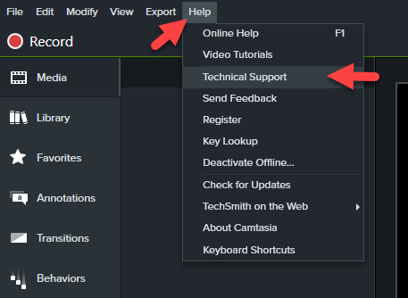 - Select Help > Technical Support.