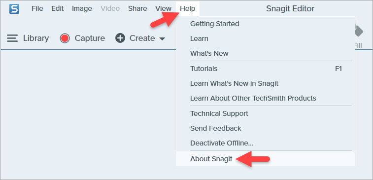 - Select Snagit > About Snagit.