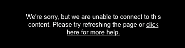 The following error appears: "We're sorry, but we are unable to connect to this content. Please try refreshing the page or click here for more help."