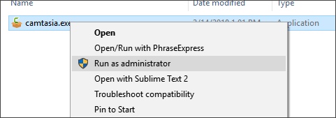 - Locate the Camtasia EXE file that was downloaded. If needed you can re-download Camtasia.