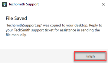 - Once you see the Success message, click Finish and check your desktop for a ZIP folder.