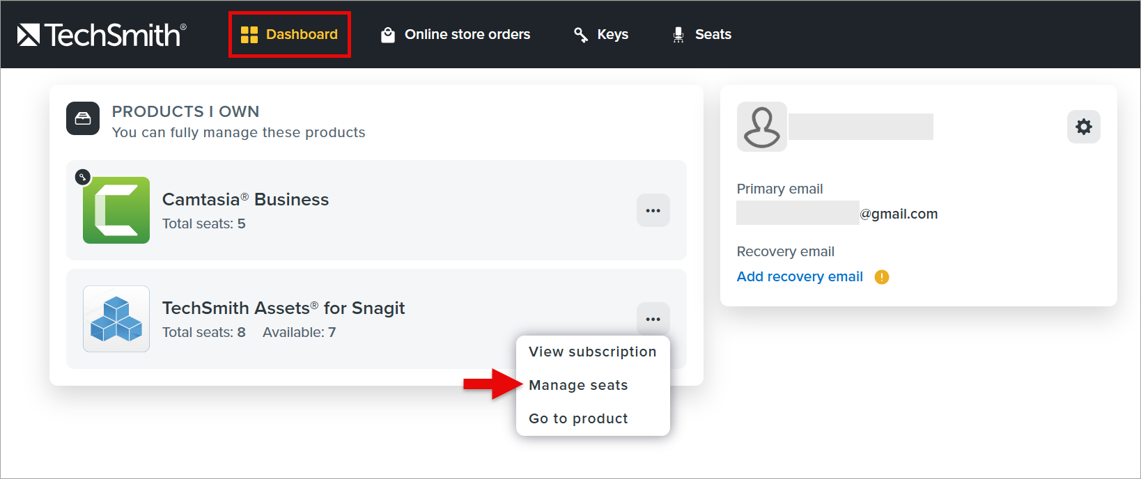 At manage.techsmith.com, you can manage who can access your cloud products: