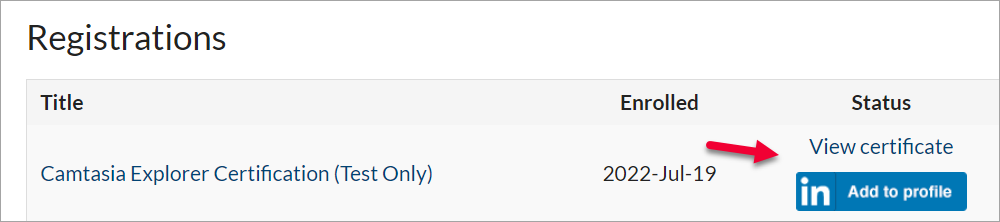 You can view your certificate or share your certification to your LinkedIn profile by going to www.techsmith.com/learn/certification/.