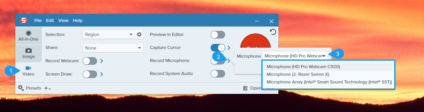- Open the Snagit Capture Application