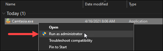 - Right-click on the installer file and choose Run as administrator.
