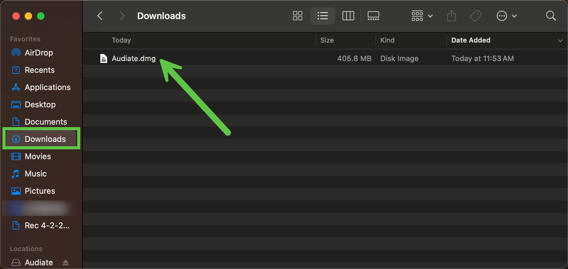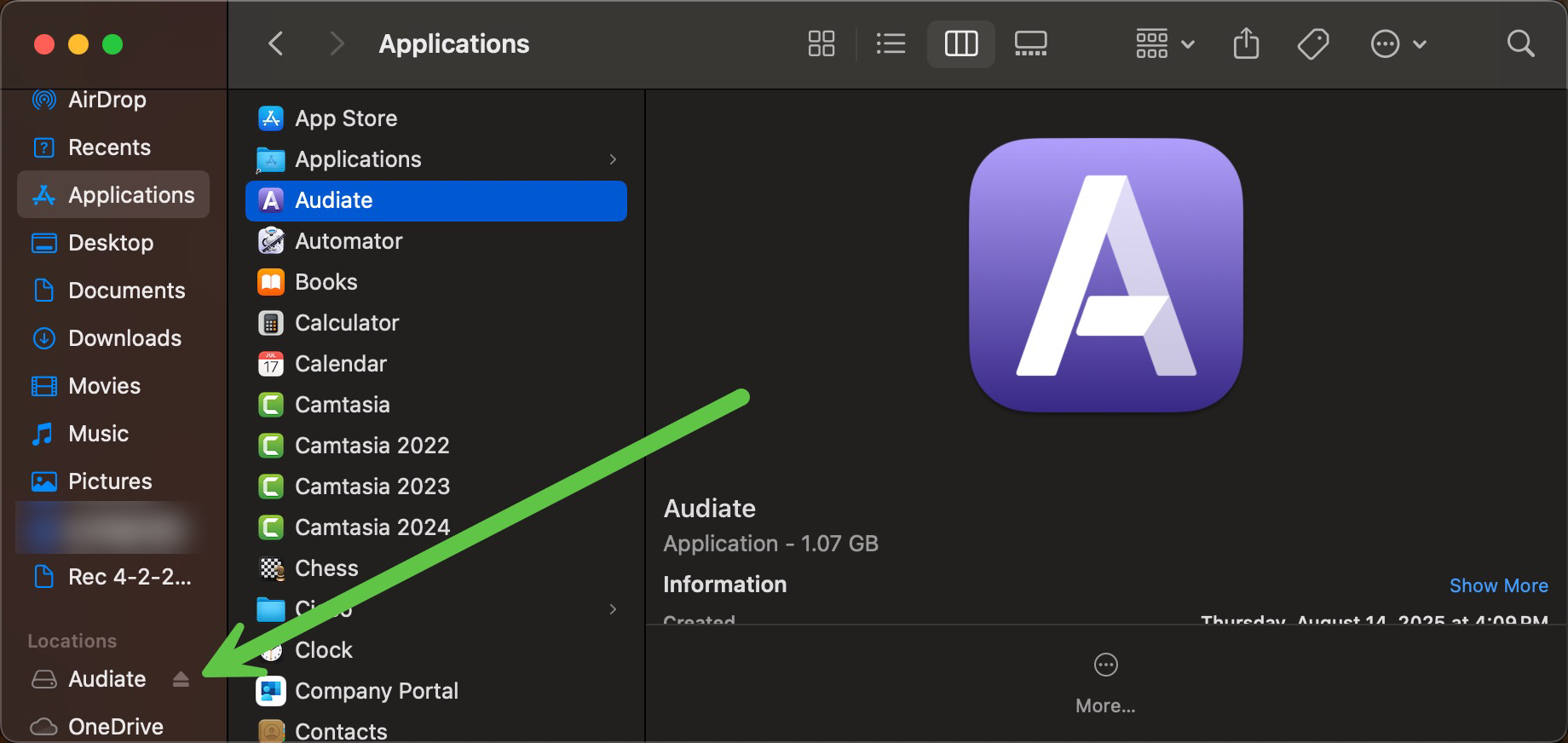 - In Finder, click the Eject icon to dismount the Audiate installer.
