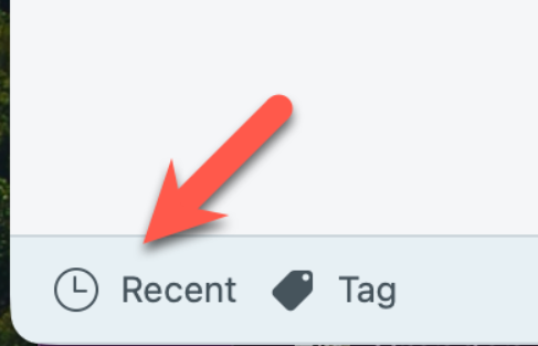 To show the Recent Captures tray in Snagit Editor on MacOS, click on the "Recent" button in the lower left corner of the Snagit Editor.