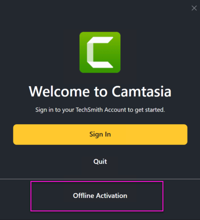 Open Camtasia Editor and click Offline Activation.