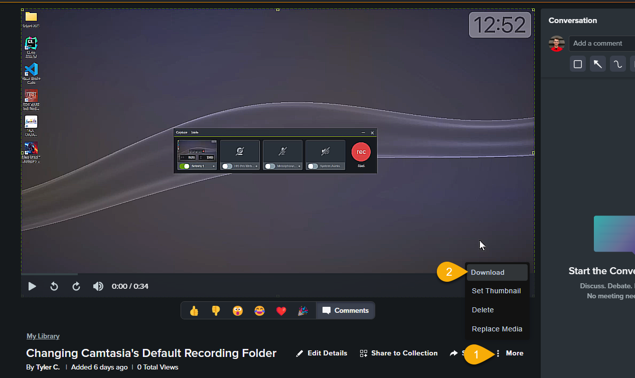 Screencast no tiene la capacidad de descargar todos los elementos de su biblioteca de una vez. Para descargar cada pieza de medios individualmente, siga los pasos a continuación: