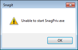 Snagitが起動時にこのエラーを表示します: SnagPriv.exeを開始できません。
