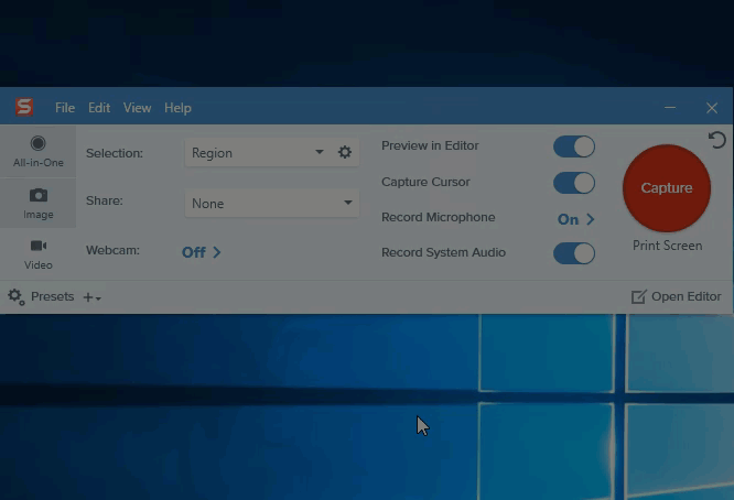 以下のオプションを試す前に、Snagitの最新バージョンがインストールされていることをご確認ください。Snagit上で、「ヘルプ」>「Snagitのアップデートの確認 」へ行き、最新バージョンをインストールしてください。更新はこちらから手動でダウンロードすることも可能で す。