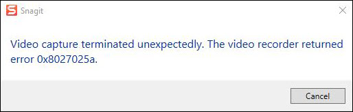 デフォルトでは、Webカメラが記録するように設定されていない場合でも、SnagitはWebカメラの初期化を試みます。これにより、ユーザーは録画中にWebカメラと画面をすばやく切り替えることができます。Webカメラに問題がある場合、Webカメラが記録するように設定されていなくても、上記のエラーメッセージにつながる可能性があります。