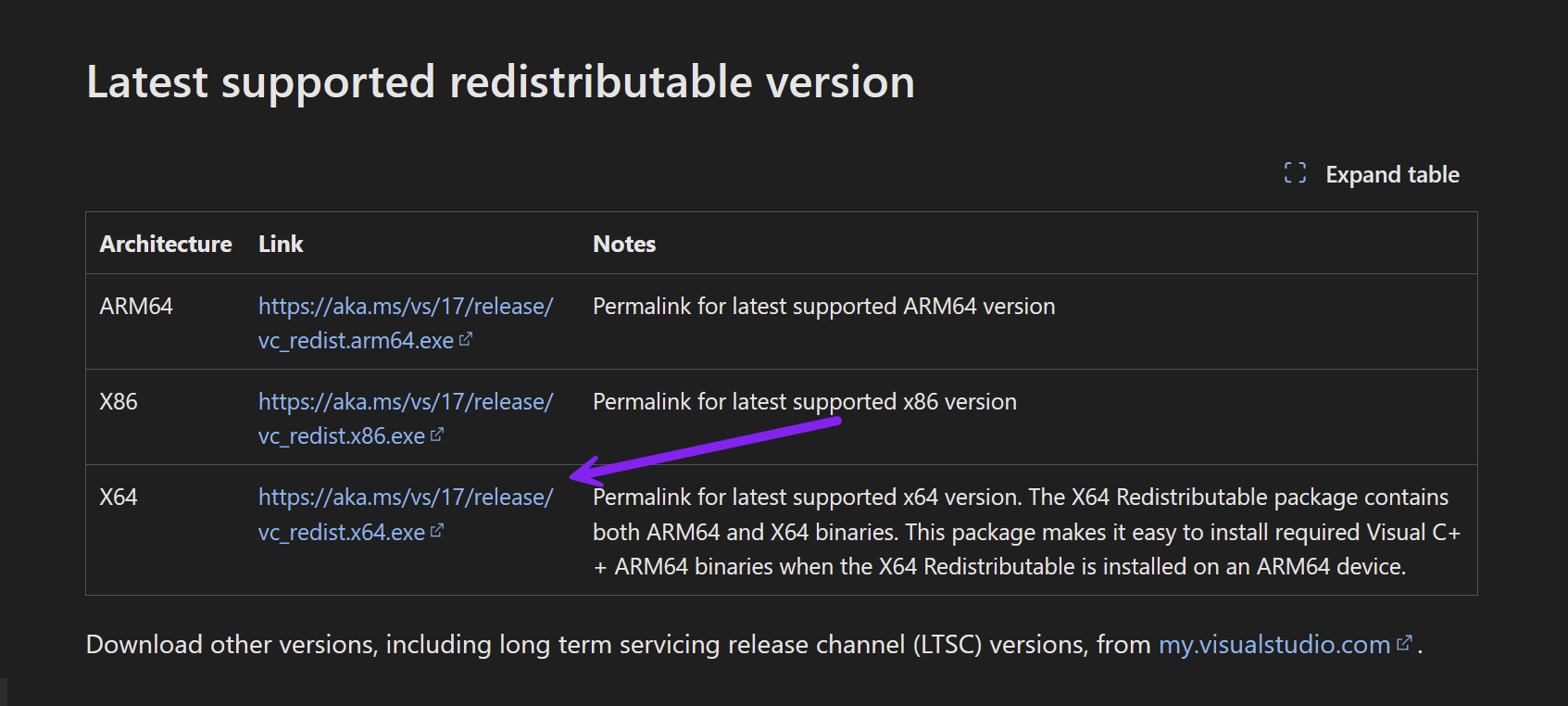Microsoft Visual C++ 再頒布可能パッケージの最新の更新プログラムをインストールしてください。最新のダウンロードが可能なページはこちらです:C++ ダウンロード ページのほぼ中央にある x64 のオプションを選択してください。