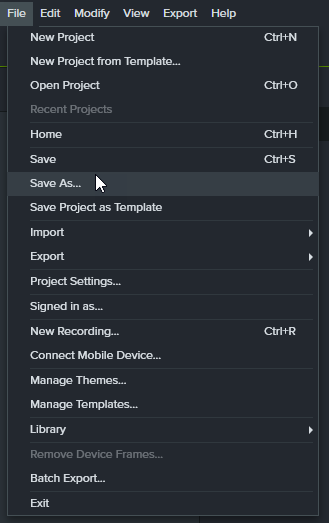 Para aprender como compartilhar projetos e arquivos-fonte com outros usuários do Camtasia Editor dentro da sua organização, veja o artigo Compartilhar Projetos.